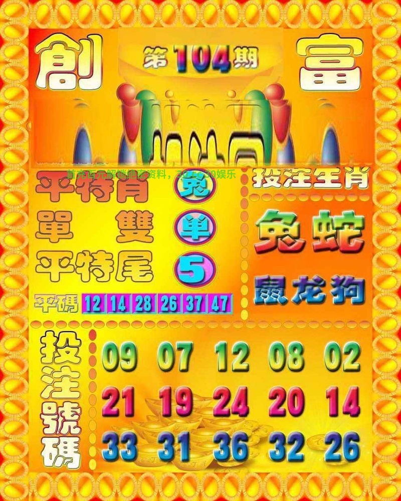 104期:天地两肖【天肖+蛇虎】开:狗32