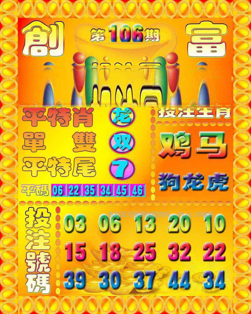 108期港彩创富投注解特开(發00)
